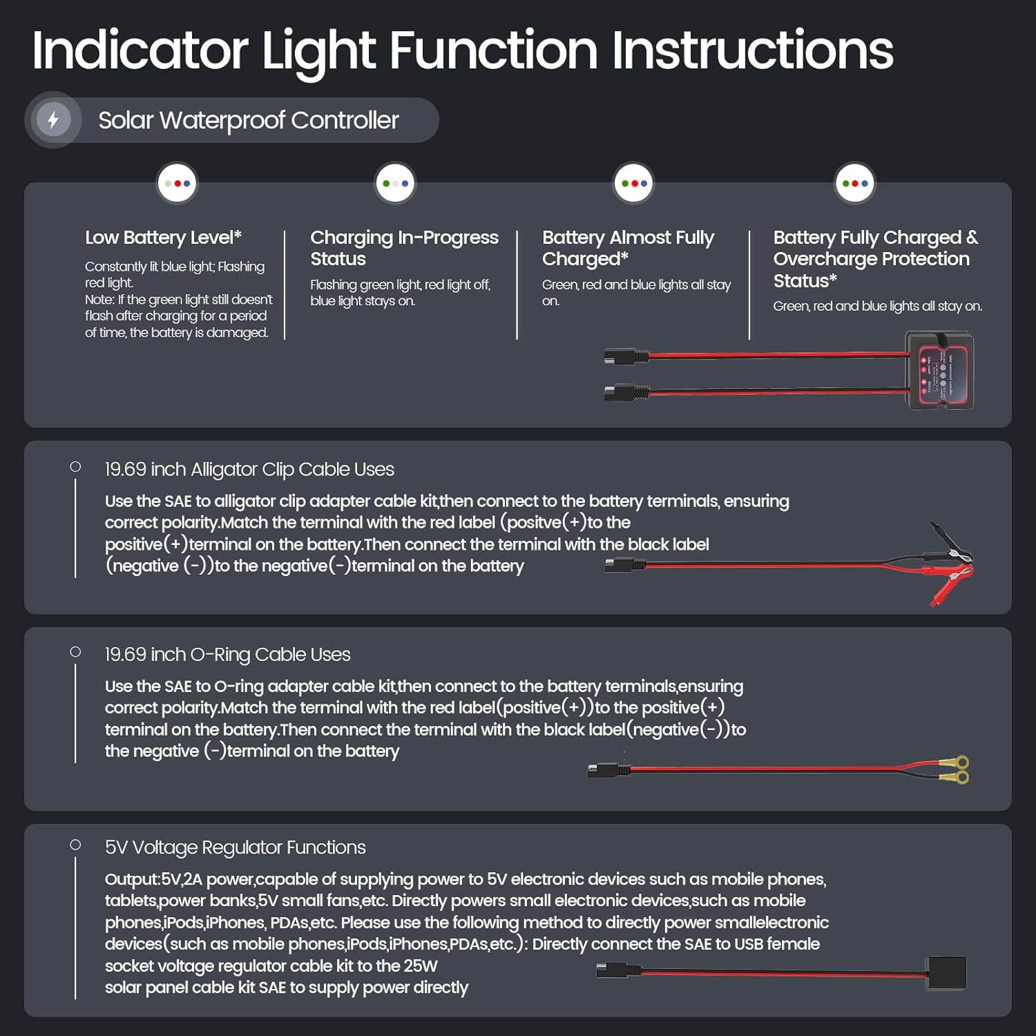 | Included Components | 25w Solar Panel, Battery Clips, Charging Cable, Mounting Hardware, Smart Mppt Controller |