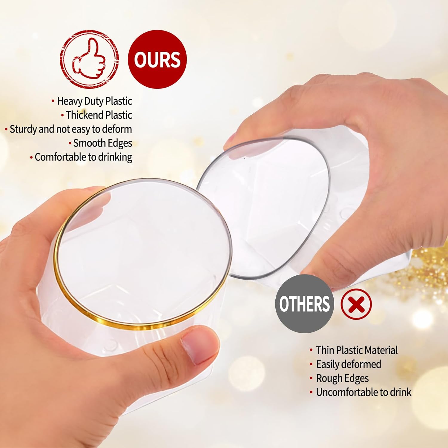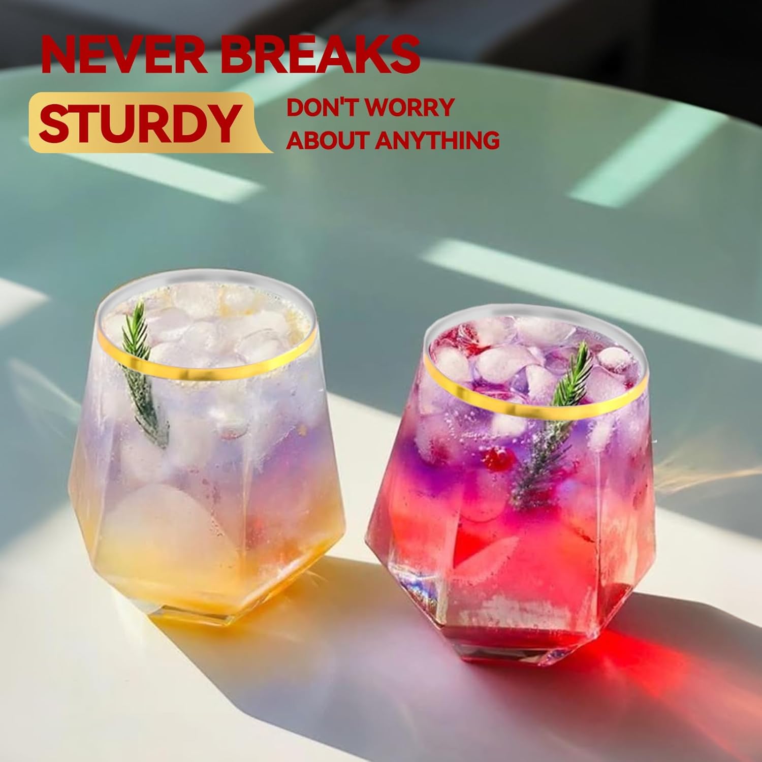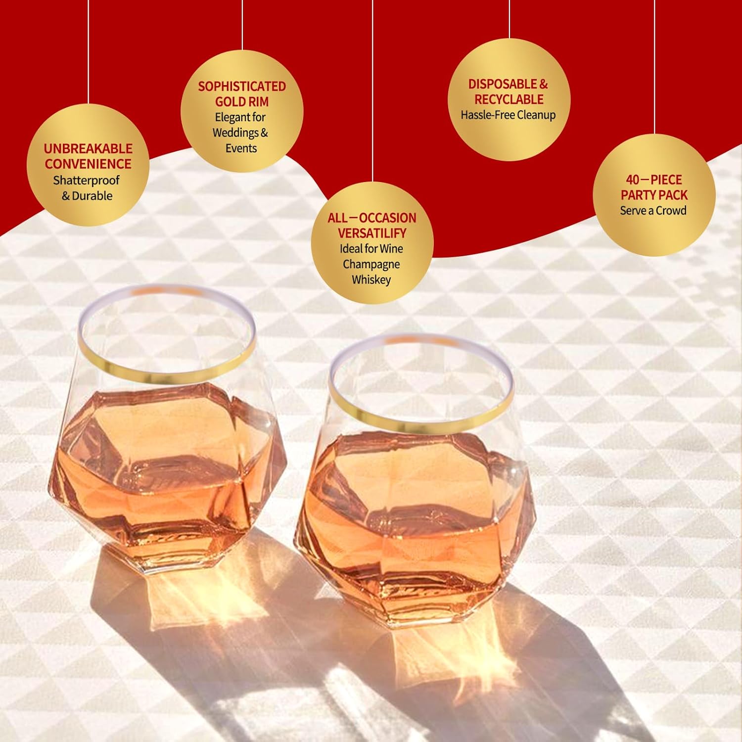Showgeous Diamond Stemless Wine Glasses – Elegant. Durable. Unforgettable.Elevate your entertaining experience with the 40 Count Diamond Unbreakable Stemless Plastic Wine Champagne Whiskey Glasses! These elegant and durable glasses are designed to bring a touch of sophistication to any occasion, whether it's a outdoor wedding cups or cocktail party drinkware, Showgeous ensures every sip shines with sophistication.Stemless Wine Glass Key Features and Benefits:ELEGANT DIAMOND DESIGN – Eye-catching diamond pattern adds grip and refined style.These clear wine glasses have anti-slip stripes for a secure grip; the sturdy, stemless base offers stability, preventing spills and tipping, they ensure guests can fully enjoy parties without worry.SHATTERPROOF & DURABLE – Premium BPA-free plastic creates shatterproof plastic wine glasses you can trust.Our ripple origami stemless glasses are made from high-quality, unbreakable plastic, ensuring both elegance and durability. Now you can enjoy your favorite beverages without the fear of shattered glass, making them ideal for homes, offices, bars, weddings, and more.IDEAL 12 OZ CAPACITY – Our value pack comes with 40 stemless wine glass, each with a maximum capacity of 12-ounces.These wine glasses complement any beverage color, making them perfect for serving wine, champagne, juice, cocktails, and mixed drinks.REUSABLE OR DISPOSABLE – Enjoy the flexibility of reusable style plastic glasses or simply toss for easy cleanup. VERSATILE OCCASIONS – From Showgeous wedding wine cups to casual backyard BBQs, these plastic stemless wine glasses fit every moment.Your biggest concern is here!Q: Are these disposable diamond glasses strong enough for holiday parties? A: Yes. They are shatter-resistant and safe for indoor and outdoor celebrations.Q: Can I use them for champagne and cocktails? A: Absolutely. The 12 oz size is ideal for champagne, wine, punch, cocktails, and holiday drinks.Q: Will they match Christmas or New Year’s décor? A: Yes. The clear ripple texture pairs perfectly with holiday themes, table décor, and party setups.Q: Are they disposable or reusable? A: Both. Use once for easy cleanup or rinse and reuse for the next holiday gathering.cupsQ: Are these plastic glasses BPA-free and safe for drinks? A: Yes! These stemless plastic wine glasses are made from 100% BPA-free, food-grade plastic, ensuring that your drinks remain free from harmful chemicals while providing a safe and enjoyable drinking experience.Q: Can these unbreakable glasses withstand high and low temperatures? A: Absolutely! These durable plastic glasses can handle cold and room-temperature beverages with ease, making them perfect for serving iced drinks, chilled cocktails, or room-temperature whiskey without losing their shape.Plastic Clear Wine GlassesRaise a toast this holiday season with premium drinkware that looks like real glass and performs like durable plastic. These 12 oz ripple cups add elegance to Christmas dinner tables, office parties, New Year’s Eve celebrations, and winter gatherings.Transform every celebration with Showgeous ’s ripple design wine cups.