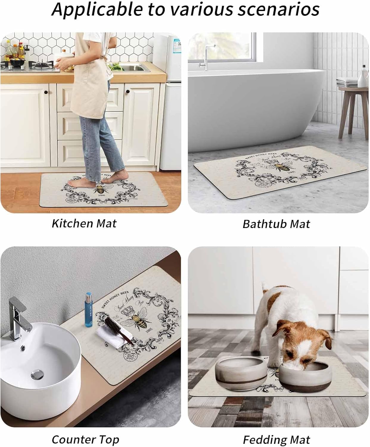 Our bathroom rugs with a microfiber and a rubber bottom is a must-have accessory for your home.The synthetic suede surface and rubber bottom are perfectly coordinated to provide an efficient water absorption system.This diatomite stone bath mat can quickly absorb water droplets within 0.5 seconds, keep your feet dry and minimize the risk of slipping, especially for the elderly and children.But that's not all - our bathroom rug boast a unique lint-free new technology layer that prevents dirt and hair from sticking to the surface.Cleaning is a breeze thanks to this innovative feature. Simply rinse with the shower head or wipe with a damp cloth and allow to air dry. No need to worry about bath mats for bathroom affecting the door switch or losing its effectiveness.Versatility is another key feature of this bathtub mat non slip.Bath rug's not just limited to bathroom use.You can also use bathroom mats as a door mat, bathtub mat, kitchen mat, bathroom mat set in front of the sink, RV bathroom mat, pet placemat, even a countertop mat.When it comes to style, our bath rugs for bathroom offer a variety of holiday-themed designs to suit your taste.Whether you like the allure of nautical, the freshness of plants, the simplicity of minimalism, the elegance of geometry, the nostalgia of retro, or the design sense of mid-century theme, we have it all.In addition, we also support letter customization, allowing you to add a personal touch to your quick dry bath mat.In summary, our bathroom runner rug features a microfiber and rubber sole that combine function, safety, and style.With its superior water absorption capacity, non-slip design, easy cleaning process and versatile use options, diatomaceous earth bath mat's the perfect addition to any home.
