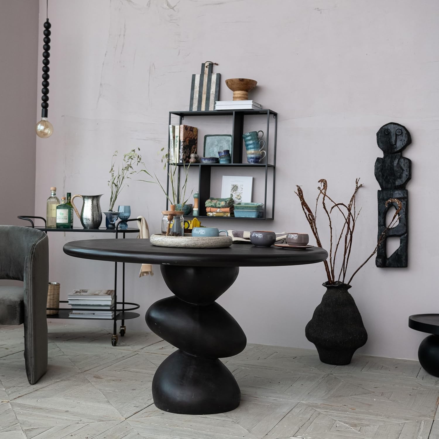 This Wood Vintage Reproduction Figure Wall Hanging in black combines historical charm with practical elegance. Its unique design and varied pieces make it a perfect accent for rustic, global, industrial, and vintage interiors. Ideal for adding character to any wall in the living room, hallway, or study, this wall hanging offers both style and authenticity. Made of high-quality wood, it ensures durability and a timeless look. It measures approximately 8.5 inches in length, 3 inches in width, and 35 inches in height, making it a versatile piece that can fit in small or large spaces. The black finish adds a touch of sophistication, while the intricate details on the figure provide a conversation starter for guests.