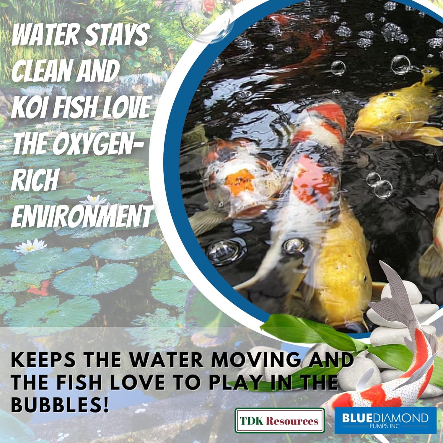 Energy efficient and effective Blue Diamond Pumps pond aerators diffusers directly supply dissolved oxygen to ponds and other water features, helping all biological processes and resulting in healthier fish and plants. Proper aeration creates a stable pond environment, keeping water healthy, clean, and safe. There is no electricity in the water and diffuser should be no more than 7 feet deep.Click add to cart to start experiencing the benefits of the Blue Diamond Pumps DS1 air diffuser station today!