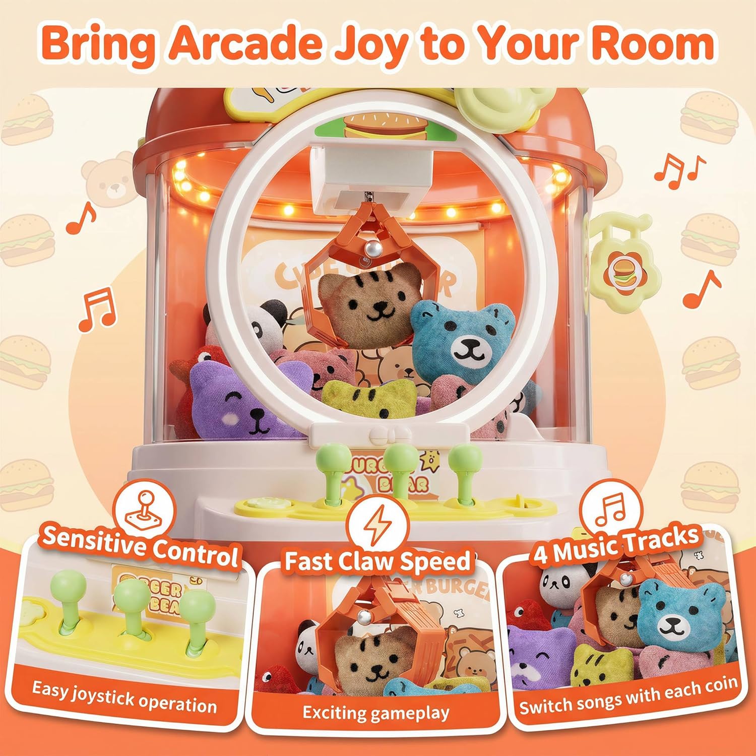 | Included Components | Bear Claw Machine for Kids *1, Coins *12 & Manual *1, Colorful Capsule *10, Cute Animal Plush Dolls *10, Power Supply USB Cable *1 & Screwdriver *1 |