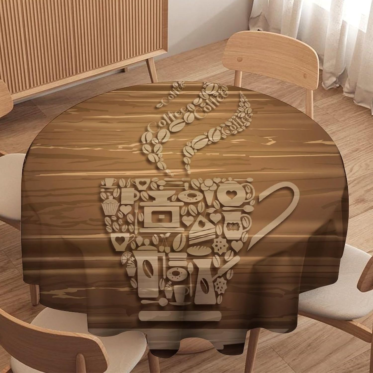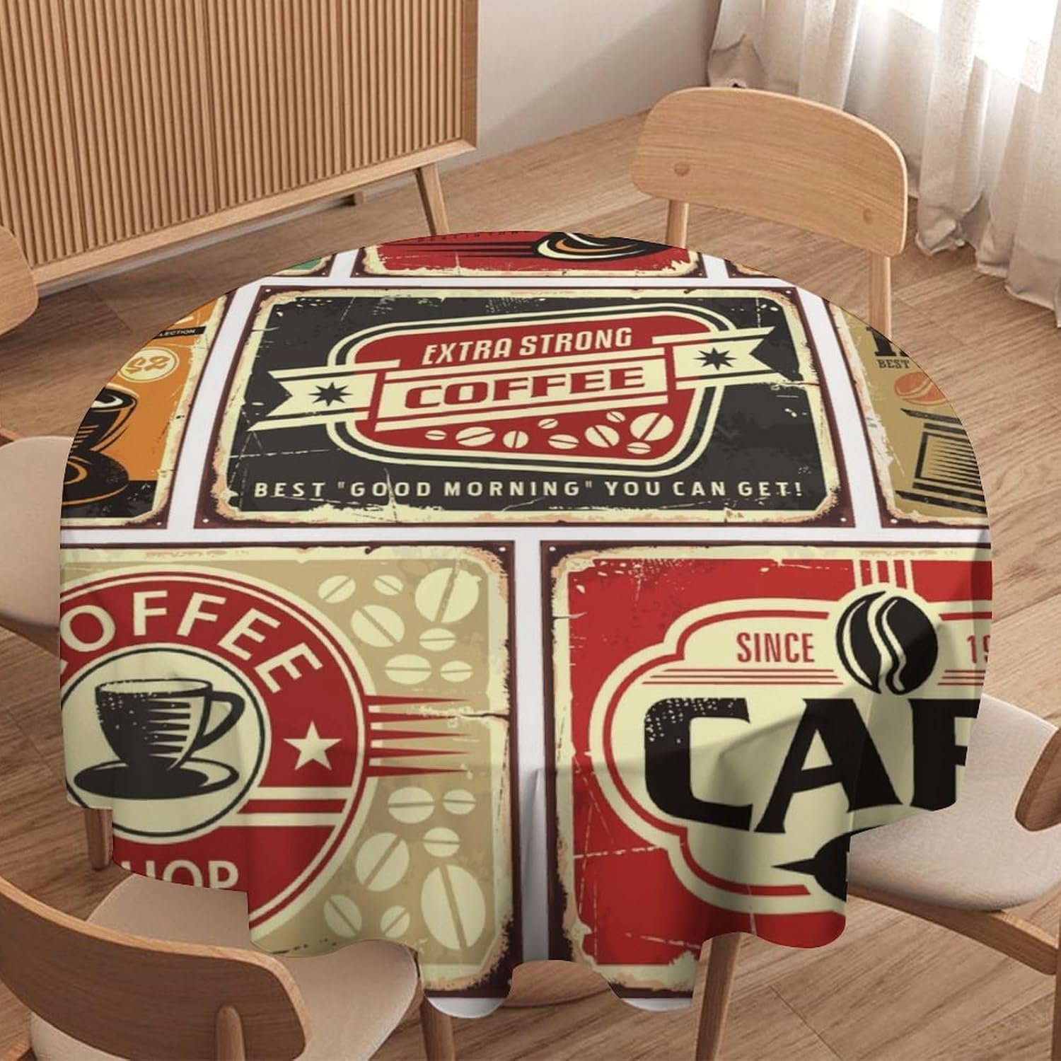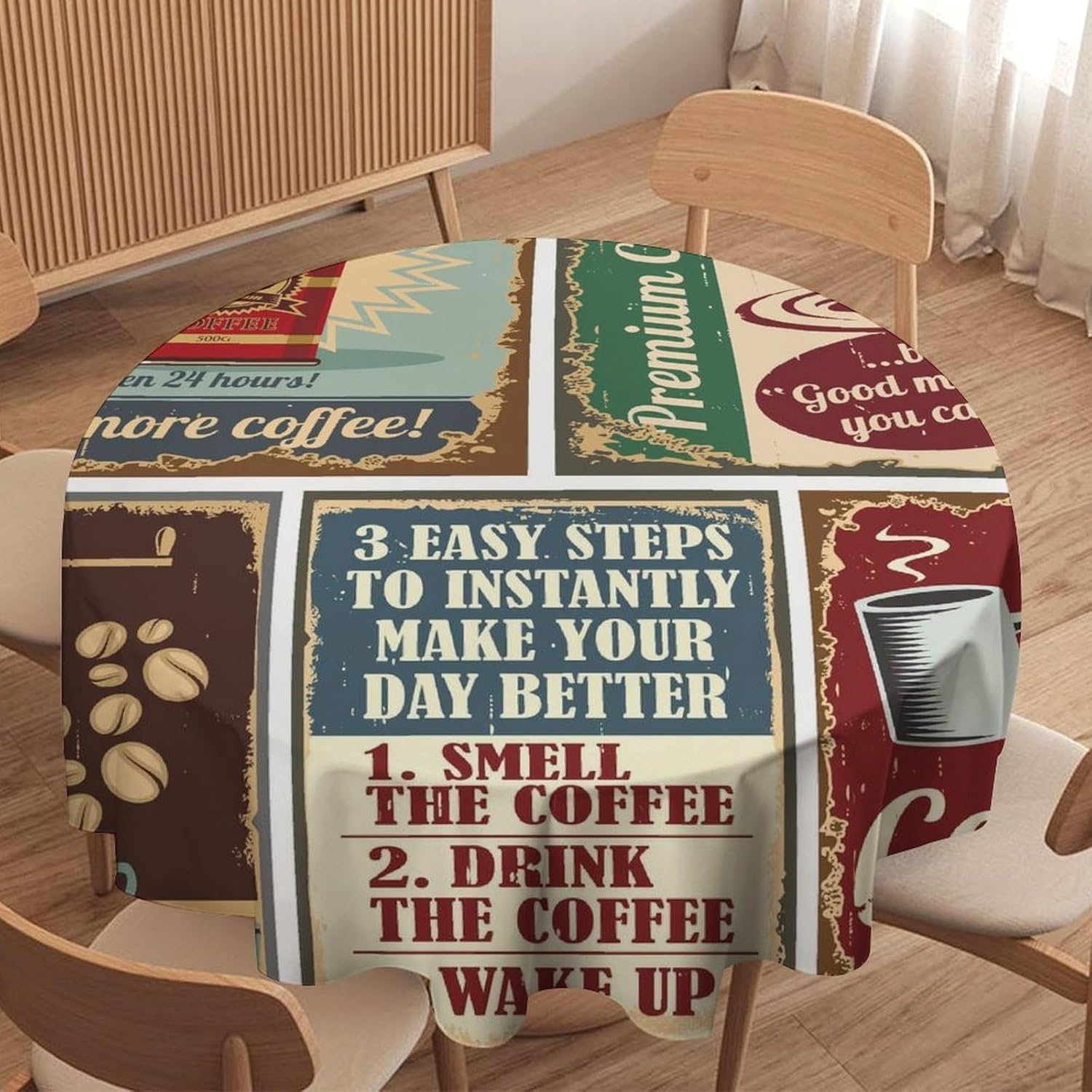Coffee Tablecloth Rustic Vintage Cafe Theme Print Table Cloth Cover for Home Kitchen Restaurant Dining Party Outdoor Picnic 70x70in