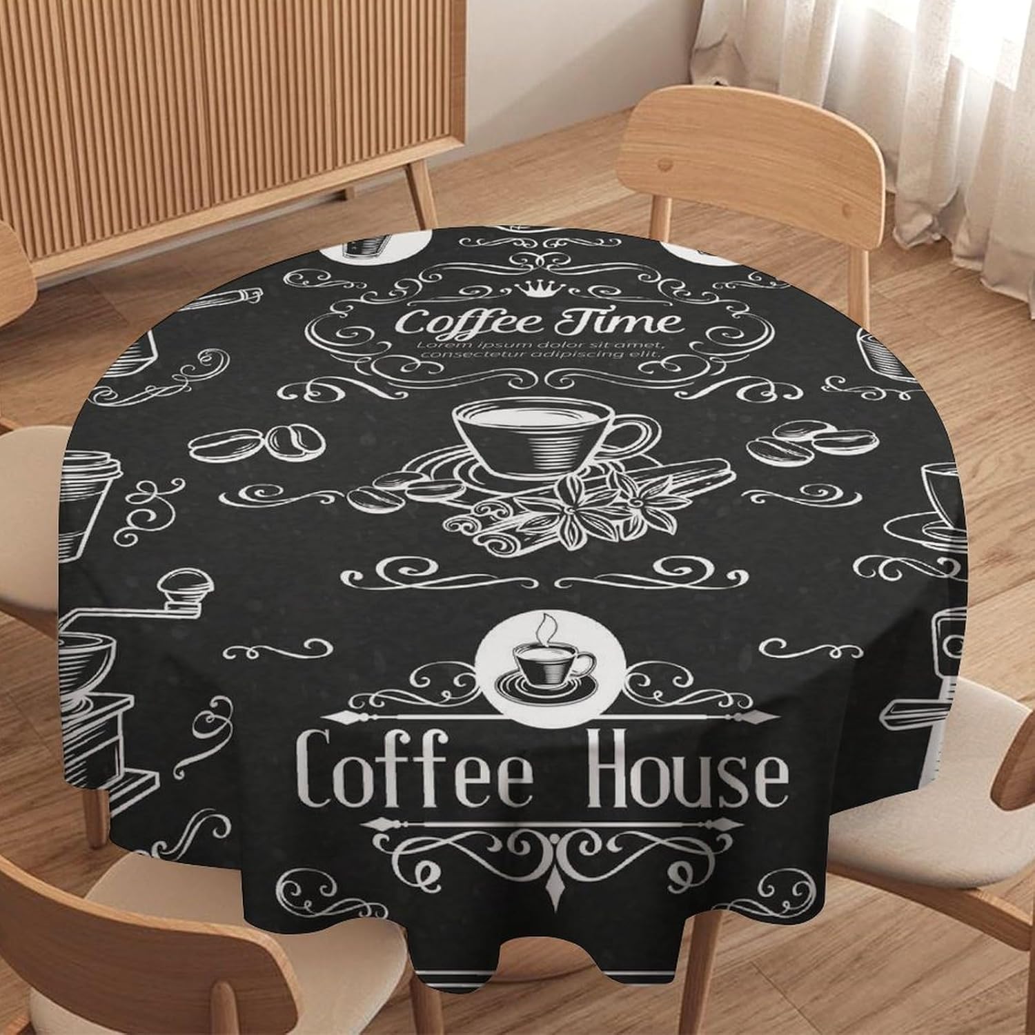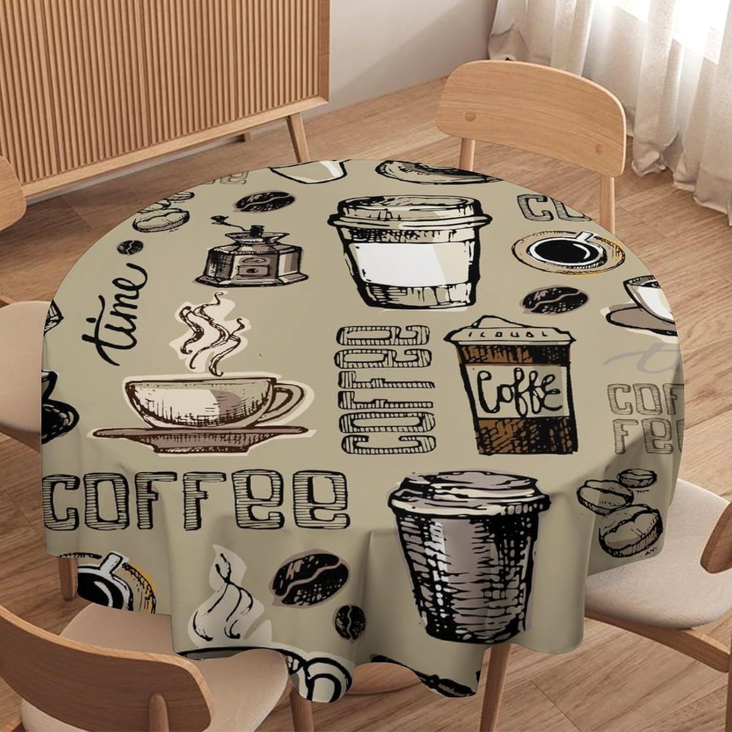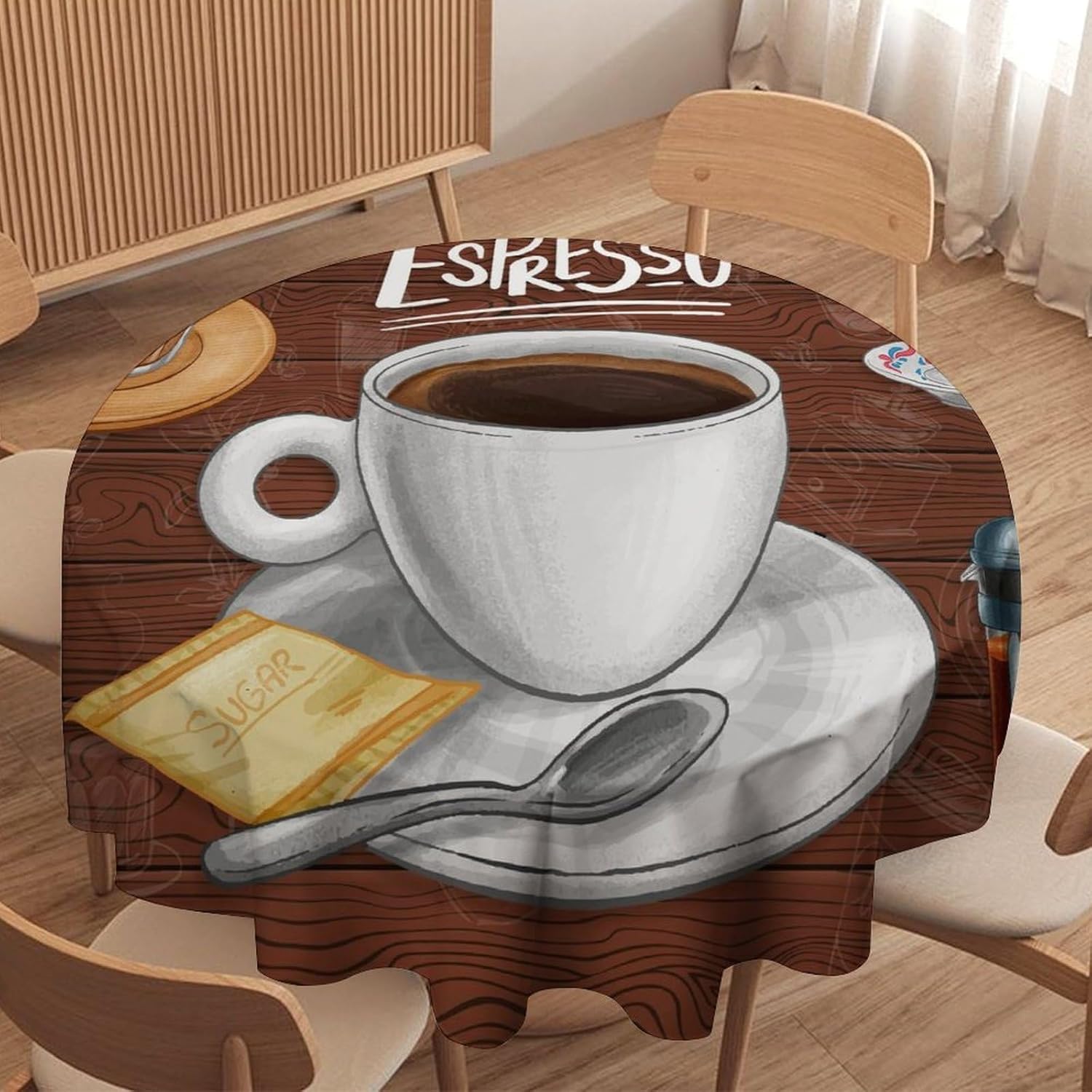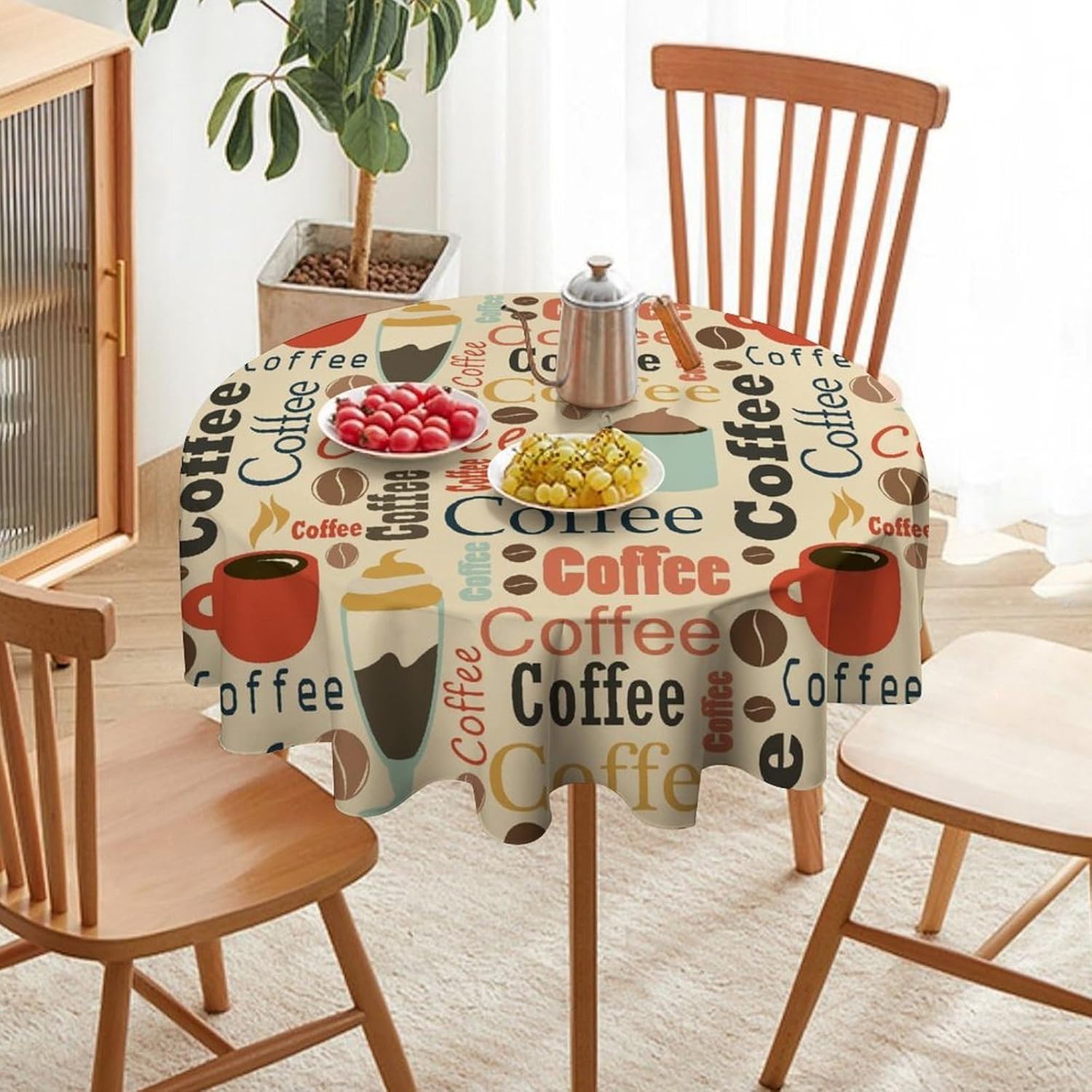 Coffee Tablecloth Rustic Vintage Cafe Theme Print Table Cloth Cover for Home Kitchen Restaurant Dining Party Outdoor Picnic 70x70in