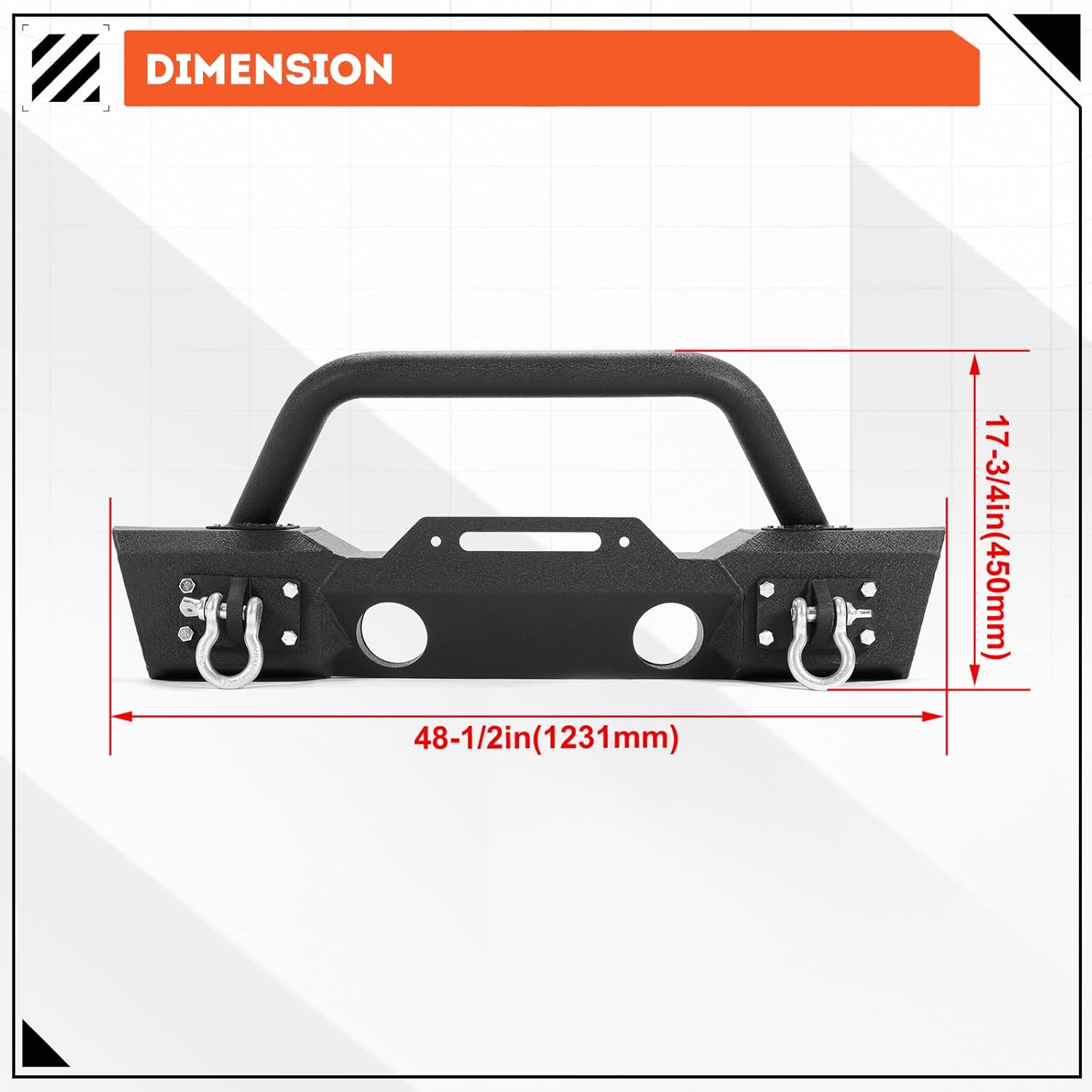 | Included Components | 1 X Front Bumper, 2 X 4.75ton D-ring isolator for free, Including all needed hardware. |