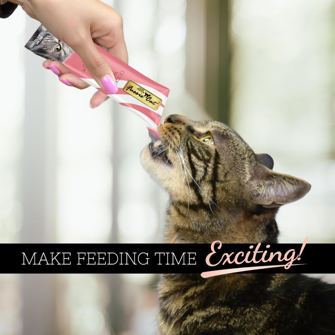 Indulge your feline friend with these delicious and creamy Fussie Cat Puree Cat Treats. They come in individually wrapped tubes of rich, velvety, and tasty puree in multiple delectable flavors*. Each recipe has zero grains, artificial preservatives, or colors, which makes it a purr-fect addition to your cat’s healthy diet. Highly palatable, Fussie Cat Puree Cat Treats feature tuna or chicken to make it easy to share fun and joyful moments with your cat. Serve it as a topper for your cat’s favorite meal or straight out of the tube as a delicious paw-some snack.