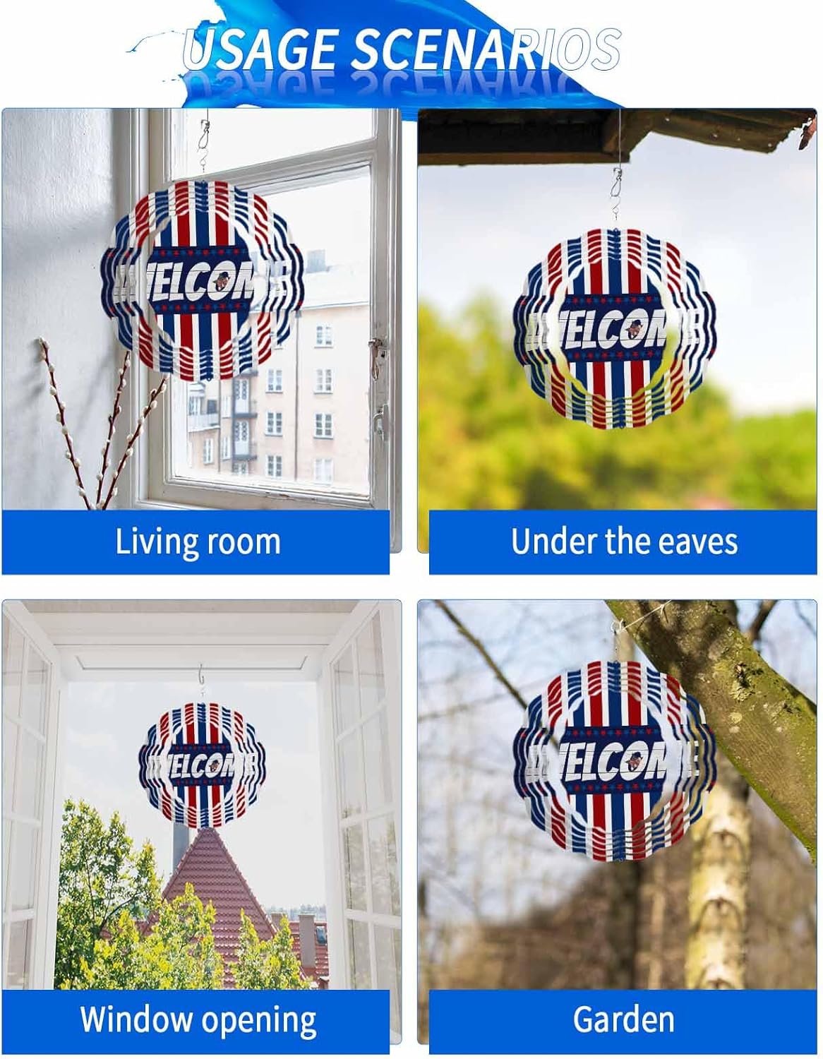 If you are looking for a way to beautify your yard with decorationsThis beautiful metal wind spinners is perfect for decorating garden, courtyard, bedroom, home, living room, and porche.Why Choose our Ggarden Spinners OutdoorMagical 3D VisualsThis windmill can rotate freely 360 ° even in a gentle breeze, creating a magical 3D effect. Add dynamic charm to your yard or garden.Versatile Indoor & Outdoor DecorationOur wind spinners perfect for garden, courtyard, balcony, porches, bedroom. Elevates outdoor spaces with elegant charm and infuses interiors with artistic.No Complex Assemblyits unique design lets you shape and unlock stunning 3D effects in just a few quick, hassle-free moves. Start enjoying its beauty right out of the box.Simple Suspension and Easy MaintenanceOur wind spinners outdoor clearance equipped with sturdy hooks, it can be easily hung on trees, walls, or outdoor hooks. Maintaining its luster is easy: clean with a dry cloth or rinse with water.Present CreativityThis garden spinners outdoor is the perfect gift choice for Thanksgiving, Christmas, birthday, wedding, Father's Day, Mother's Day, housewarming celebration, Valentine's Day, anniversaries, and more.Size SelectionWe offer two specifications: 8-inch wind spinners and 10 inch wind spinners. You can freely choose according to your own needs. Our heat sublimation wind turbine blanks are made of stainless steel to ensure durability.