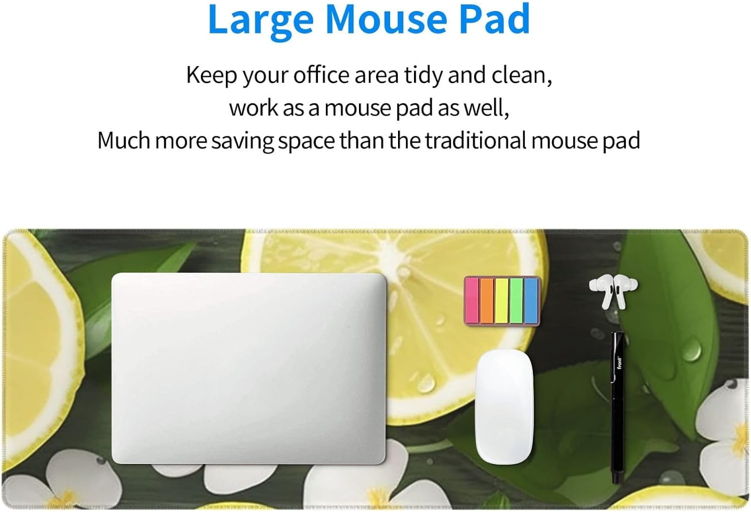 Large Gaming MousePad with Non-Slip Rubber Base Extended Laptop Desk Pad 31.5x11.8inch Long Computer Keyboard MouseMat Fresh Lemon Mousepad for Home Office Work