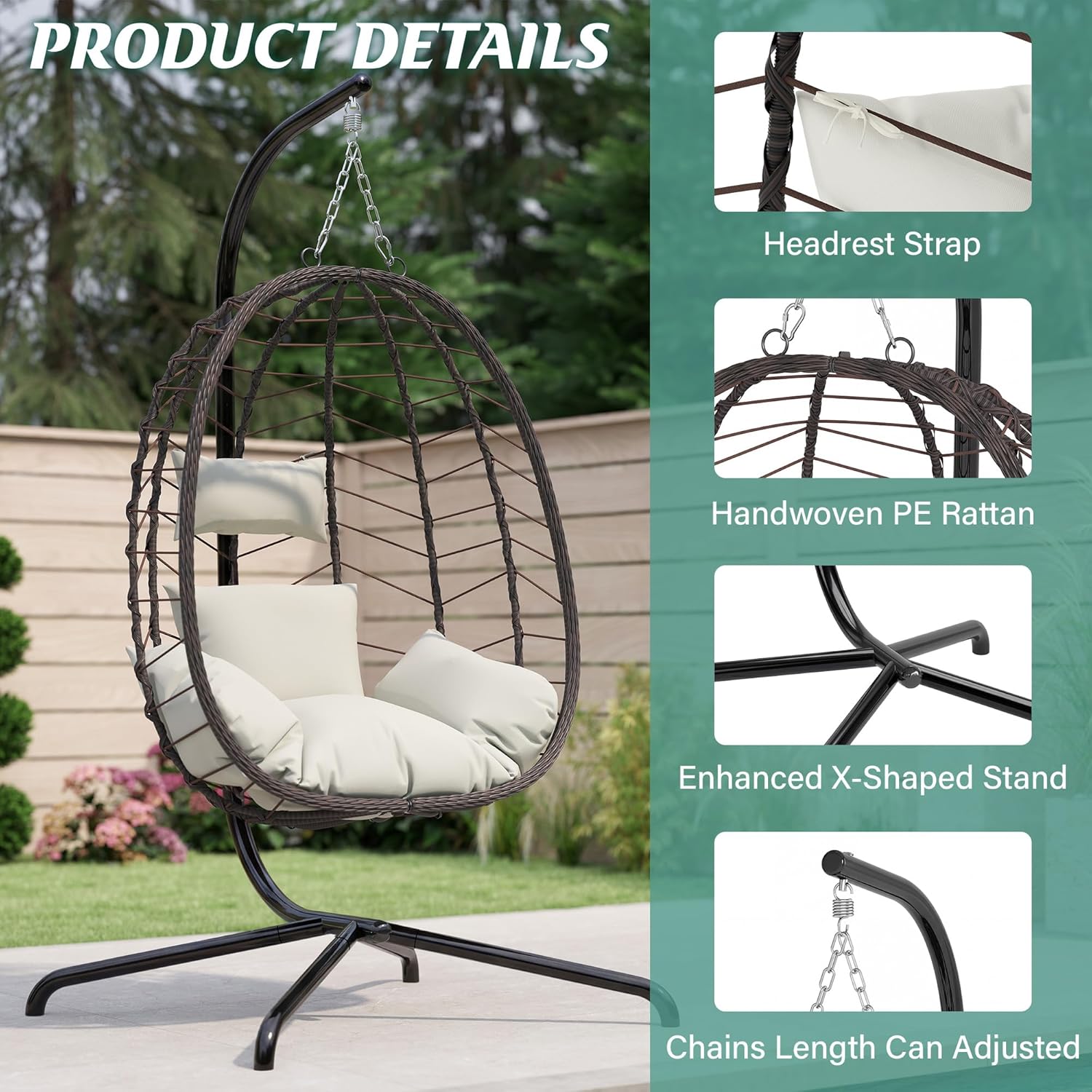 | Included Components | Bracket, Seat cushion+headrest, Egg chair |
