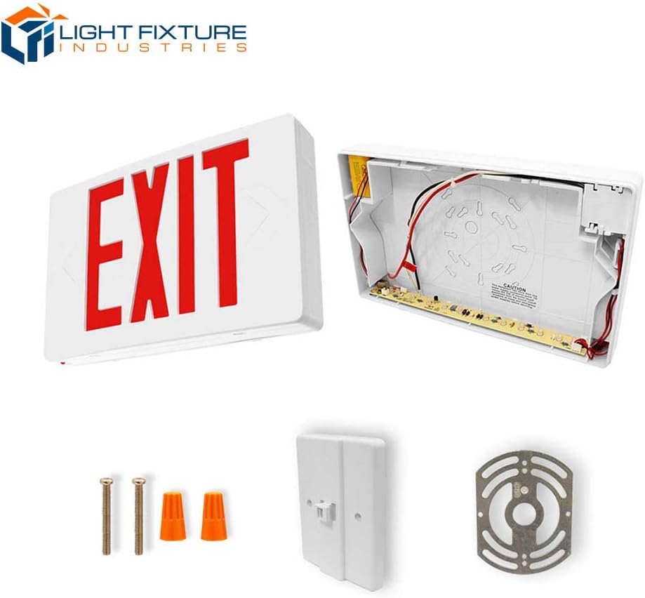 A simple, efficient and secure exit sign. Includes backup battery, works on either 120 or 277 VAC. Faceplate includes knock-out left/right arrows. Allows top, lateral or flush mount installation. Fixture is 1 or 2 sided. This unit will self test every 28 days for 5 minutes and 90 minutes every 6 months. Meets or exceeds UL924 (21 separate tests), NEC, OSHA & NFPA 101 Life Safety Code requirements