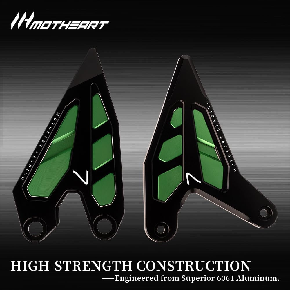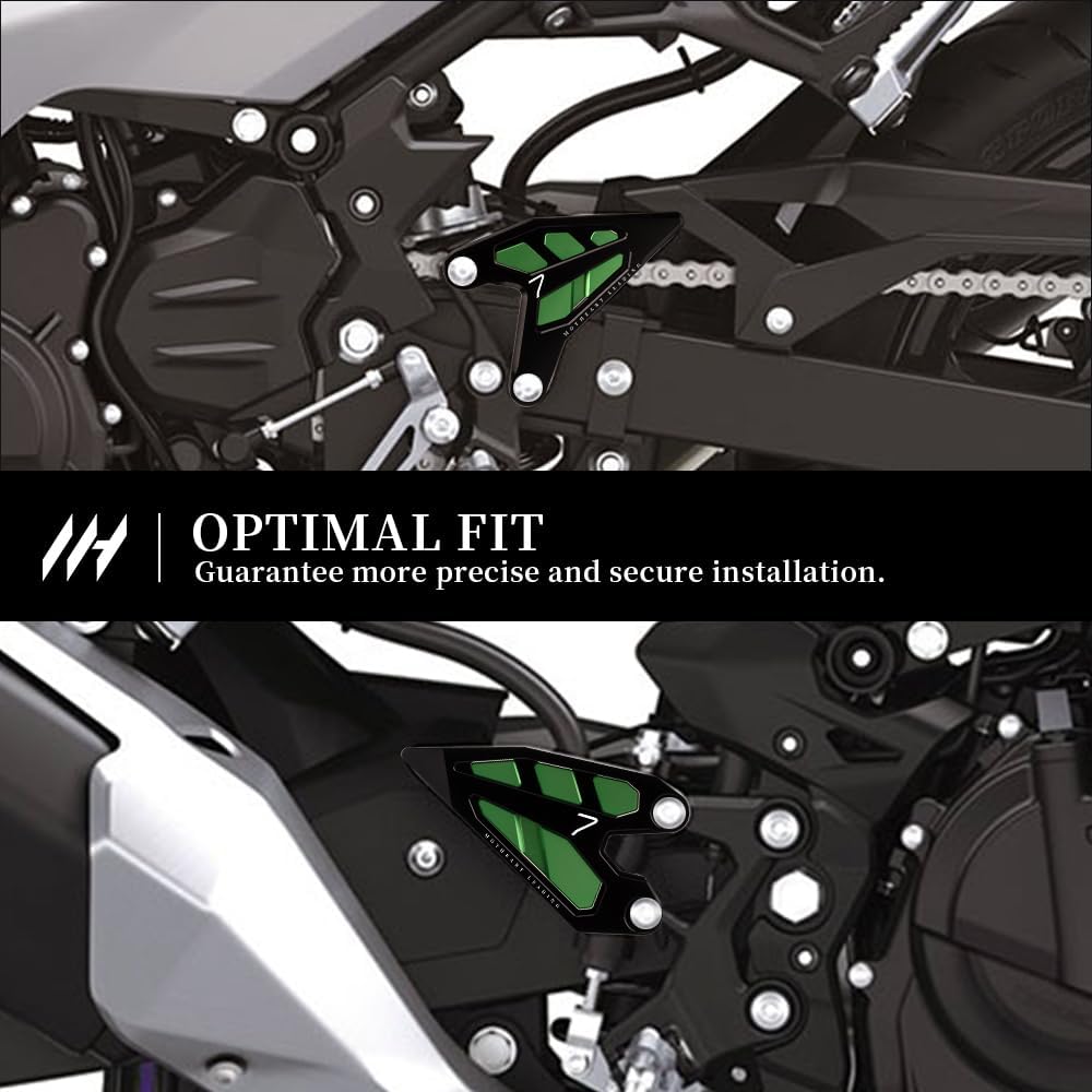 Motorcycle Foot Pegs with Heel GuardCompatibilityZ7 Hybrid 2024-2025Ninja 7 Hybrid 2024-2025Compatibility NoticeKindly confirm this part fits your motorcycle before purchasing.DetailMaterial: AluminumSurface: anodizedColor: Black/Green/Gray/RedWeight: appr. 234.29 gram / 8.264 ounces / 0.517 poundsSize: appr. 14.00×10.00×2.00(cm) / 5.51×3.94×0.79(inch)Included in delivery2 x Motorcycle Foot Pegs with Heel GuardMounting AccessoriesMounting instructions