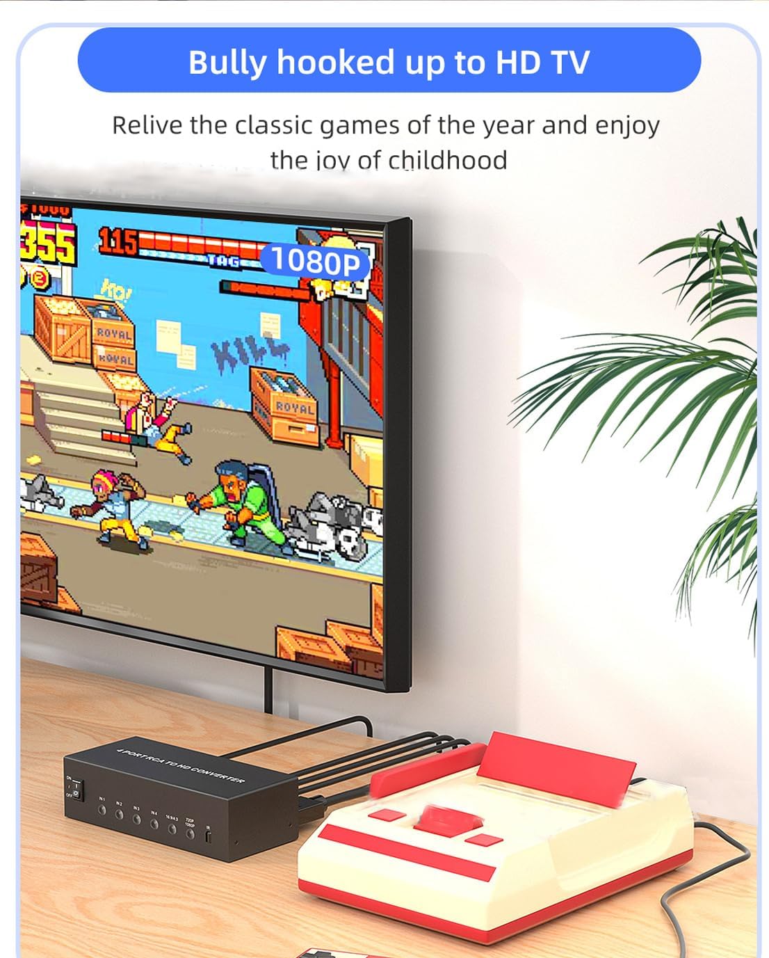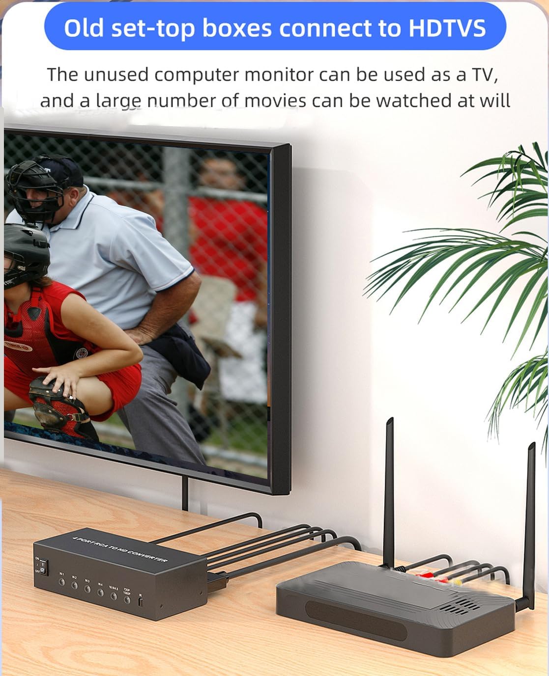 Compatibility: RCA devices: VCRs, DVD players, camcorders, VHSanalog game consoles: PS 2, PS 3, Wii, N64SPECIFICATION-Item Dimensions: 5.5*2.36*1.18in-Item Weight: 1lbs-Material: ironPACKAGE:1* Multiple RCA to HDMI Converter1* Remote Control (2*AAA batteries required but NOT included)Key Features-4-in-1 Retro Hub -480i/576i to 720p/1080p Upscale -Perfect Aspect Ratio on Demand -Plug-and-Play Convenience Turn your modern screen into a time machine—order the 4-Port RCA to HDMI Converter today and rediscover the games and movies that defined your childhood!