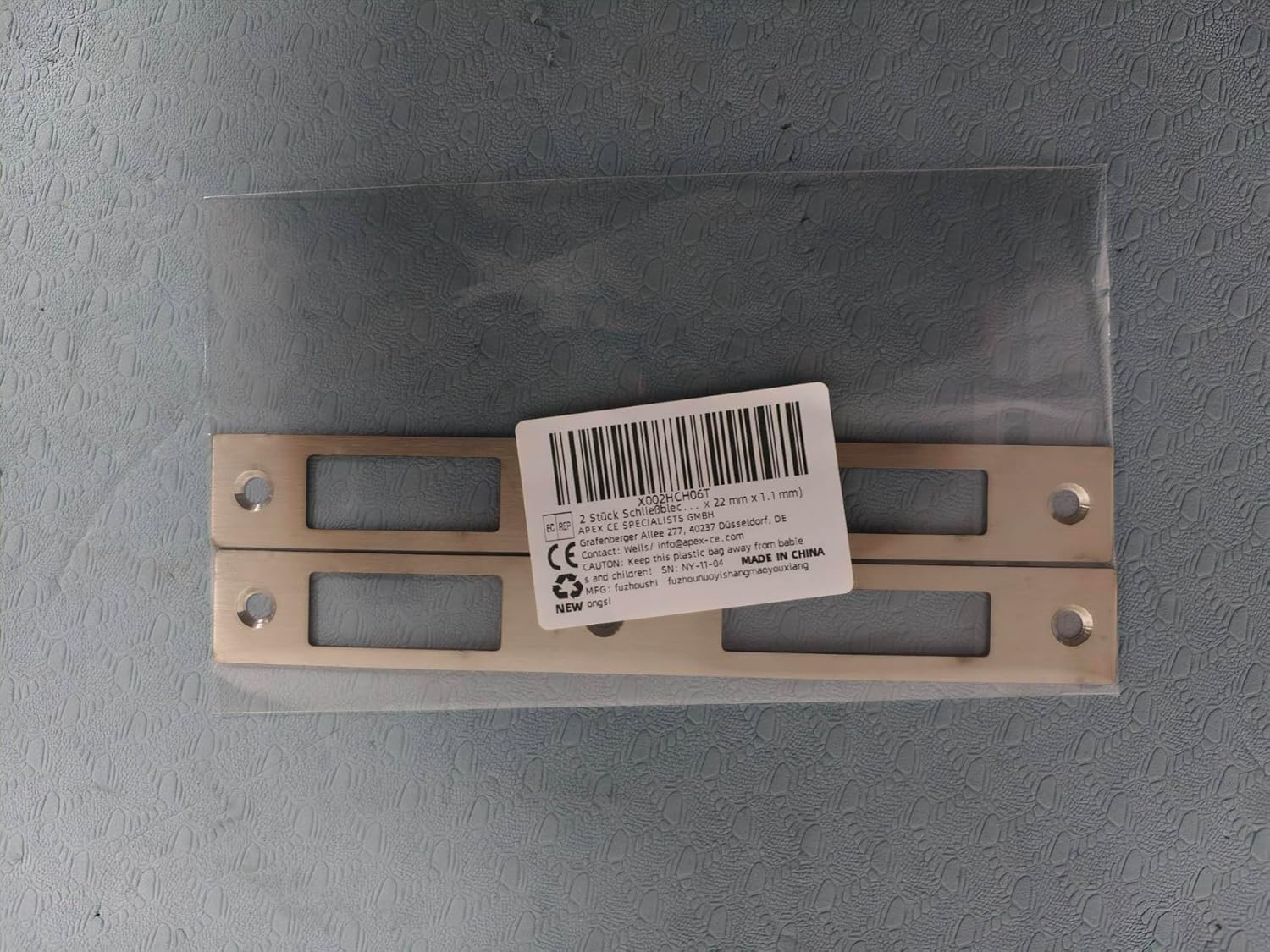 Pack of 2 strike plate house door, closing plate stainless steel angle strike plate for door locks rust-proof easy installation for door handle latch safety strike plates (172 mm x 22 mm x 1.1 mm) Before installing the front door strike plate, you must ensure that the door frame is clean and free from dirt and rust. If the back of the angle strike plate has fine marks or textures, these are natural traces from the laser cutting process, normal production residues. They do not affect the structural stability or the use function of the product. Product size: 17.2 x 10 x 0.11 cm / 6.77 x 3.94 x 0.04 inches. Product weight: 47 g. Pack size: 17.2 x 10 x 0.11 cm / 6.77 x 3.94 x 0.04 inches. Package weight: 47 g. Colour: silver. Material: stainless steel. Interior: 2 pieces strike plate front door.