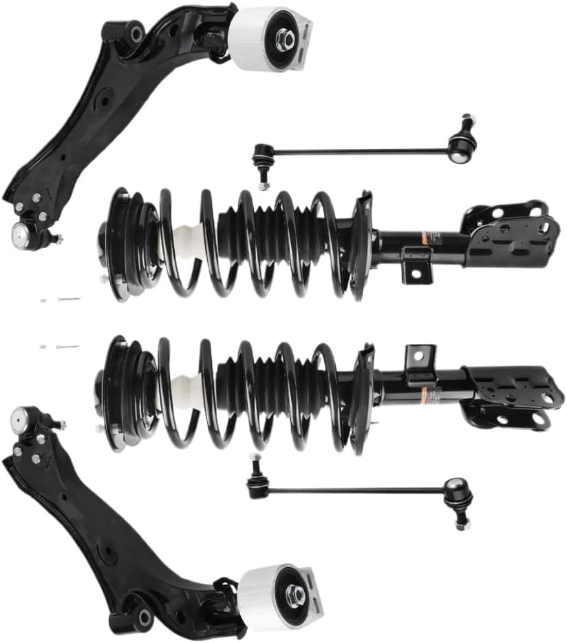 This front suspension kit is compatible with Equinox models from 2010 to 2017.It includes strut assemblies, control arms, and sway bar end links engineered to meet strict function and dimensional specifications.The components are designed to help restore ride height, reduce vibration, and improve overall driving stability and comfort.Application: - Equinox 2010 2.4L - Equinox 2011–2017 All Models Package Includes: - 1x Front Left Strut with Coil Spring Assembly – 272527 - 1x Front Right Strut with Coil Spring Assembly – 272526 - 1x Front Lower Control Arm with Ball Joint – Driver Side – 524-157 - 1x Front Lower Control Arm with Ball Joint – Passenger Side – 524-158 - 1x Front Stabilizer Sway Bar End Link – Driver Side – K750188 - 1x Front Stabilizer Sway Bar End Link – Passenger Side – K750189 Features: The strut assembly uses damping oil tested for function across a temperature range of -40°C to 80°C.Components undergo rigorous fatigue and material testing to and consistent fitment.Manufacturing includes multiple quality checkpoints to maintain product.Packaging materials are selected with environmental considerations in mind.