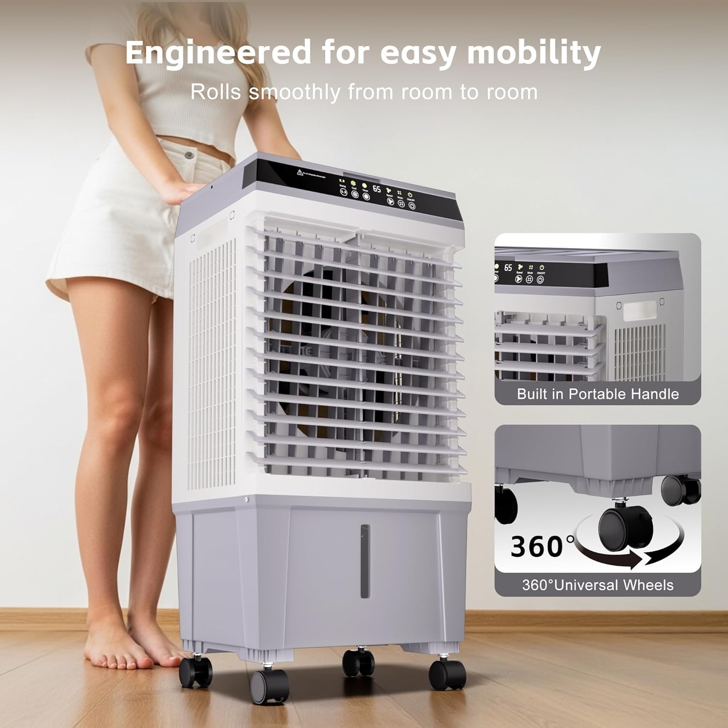 | Additional Features | 5.3-Gal Large Water Tank,4 Ice Boxes,120° Wide Oscillation, 3-Speeds,2-Modes,12H timer,6 Feet Power Cord, The High-quality Water Curtain, Top and Bottom Dual Tanks, Remote & Touch Control,4*360° Wheels,Built-in Carrying Handle,Adjustable Shutter |