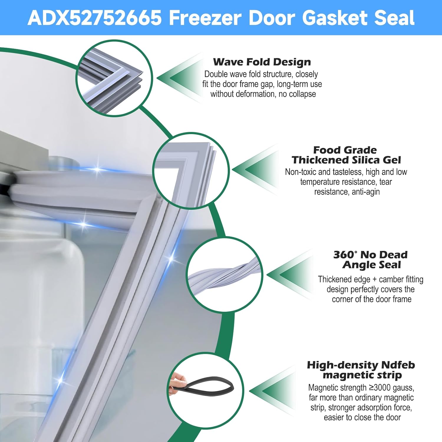 | Included Components | 1x ADX52752665 Freezer Door Gasket Replacement, 20 x food grade plastic bags |