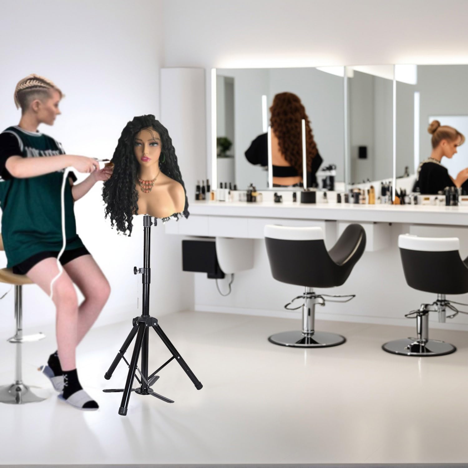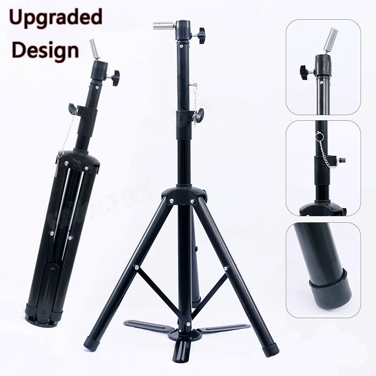 Warm tips: Canvas Block Head is not included! Flexible height Hair Stand Adjustable Holder, more convenient and faster at work. Three non-slip foot pedals at the bottom of the wig stand tripod, which can make the tripod stand more firmly on various grounds when doing wig making and hairdressing design. Can be rotated 360 degrees Our mannequin tripod comes with a black carrying bag, very convience when you take the tripod for class, exam or trip.