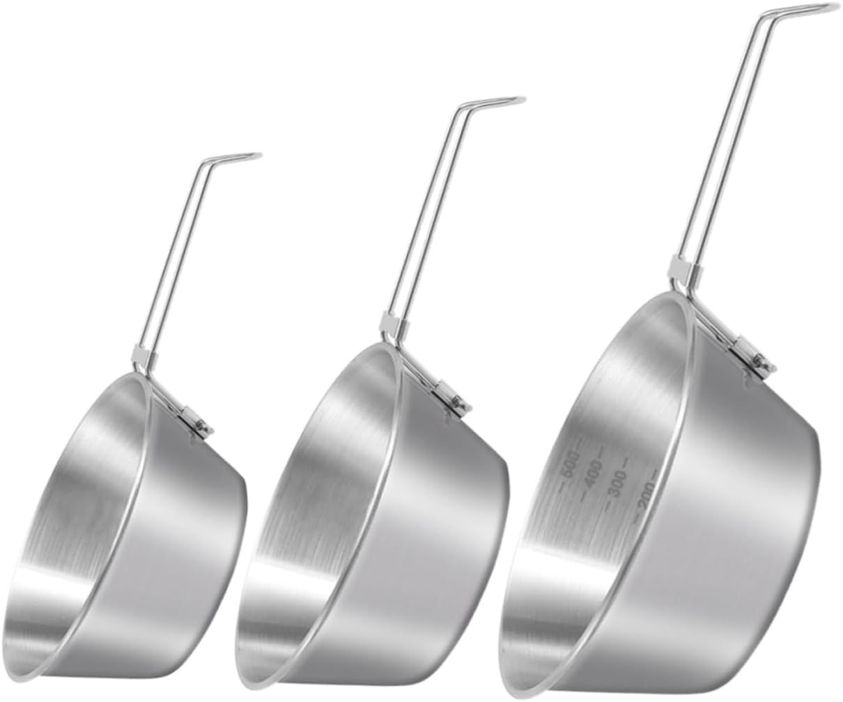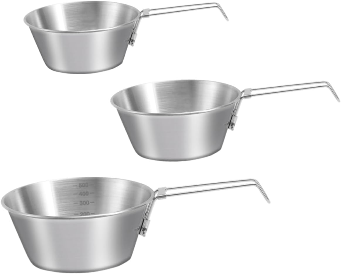 Package List 12 x Camping Bowls Features -Material:Stainless Steel foldable handle camping bowl -Size:20.50X10.50X3.50cm/8.07X4.13X1.37in picnic cookware -Color:Silver stainless bowls -Size:22.50X12.00X4.00cm/8.85X4.72X1.57in stainless steel mixing bowl -Size:25.50X13.00X5.00cm/10.02X5.11X1.97in multi-use travel bowl -Scraping and wear resistance, rust- and the interior is easy to clean stainless bowl. -Compact size, lightweight and portable, for camping, hiking and other outdoor activities barbecue food bowl. -The bowl is designed with folding handle, and the other one is designed with a fixing handle hiking stainless bowl. -When you have this camping bowl, you are easy to enjoy a cup of hot tea, soup or coffee even in outdoor metal bowl. -This camping bowl is made of stainless steel material, to use and no harm to health prep bowls.Goods Descriptioncamping food bowl With handles, keep your fingers from the heat.collapsible mixing bowls for camping Wide mouth design for comfortable eating and drinking.hiking stainless bowl Sturdy and , the stainless steel bowl can be used for a long time and become a good partner for camping.outdoor barbecue bowl A present for your friends or family who like camping, give them a little surprise